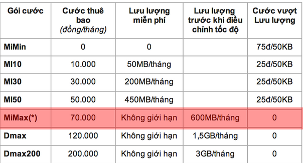 Tùy vào nhu cầu sử dụng khách hàng, lựa chọn các gói cước 3G sau: